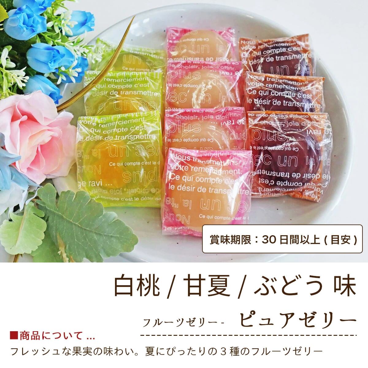 内容量 ピュアフルーツゼリー 2個、わらび水羊羹or涼さらり 2個、ドリンクカップゼリー2個