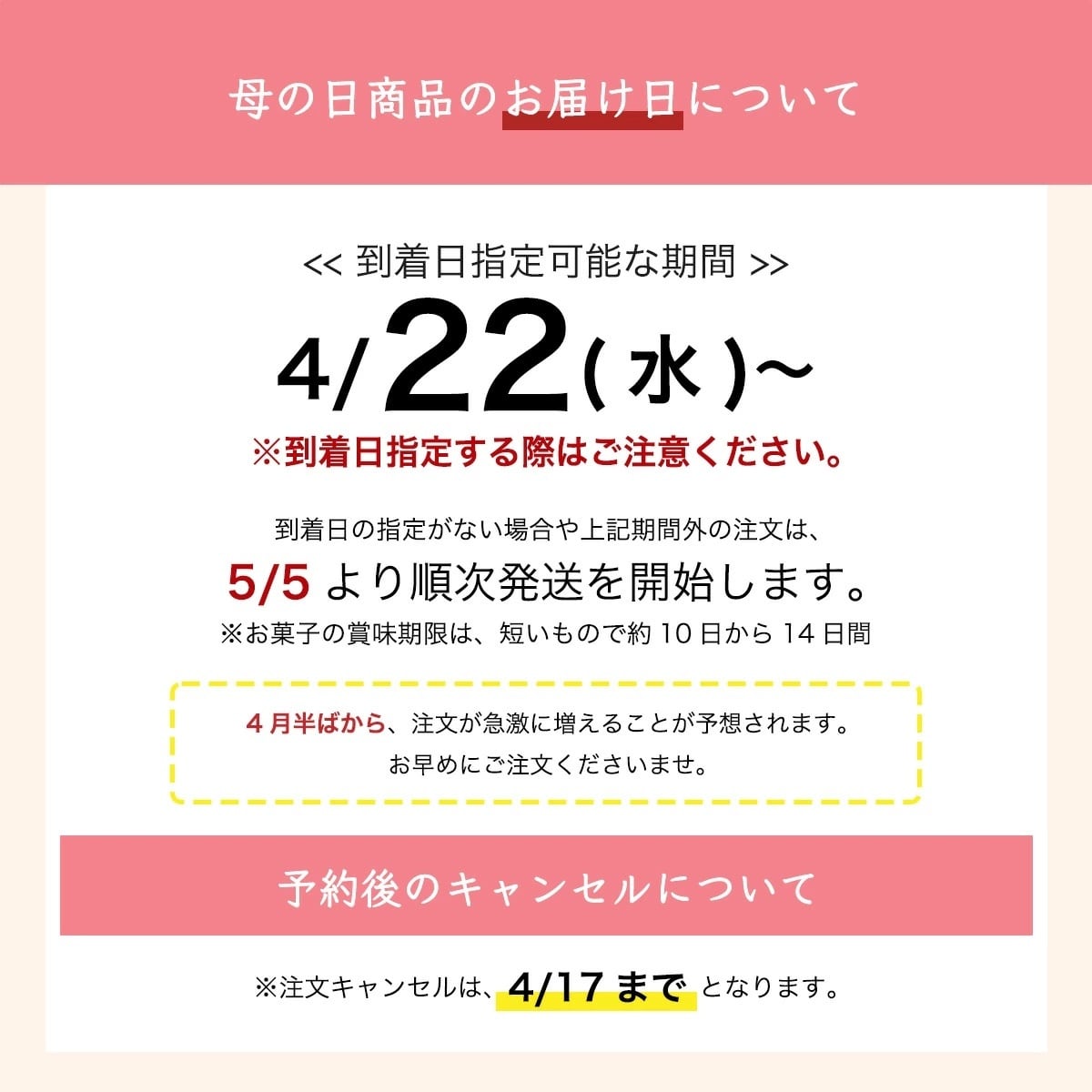 ご希望の到着日に遅れてしまう場合があります。