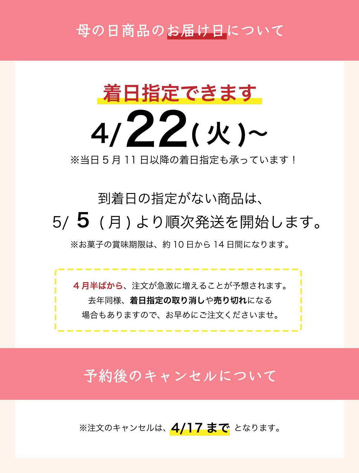 配送地域や運送状況によって、母の日当日又、