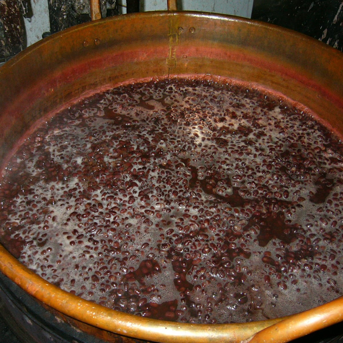 季節やその日の環境によって、炊き込む時間や砂糖の量などが微妙に変わります。微調整が一番むずかしいところです。最中にとって、餡は命。だからこそ、餡づくりには一番神経を使っています。