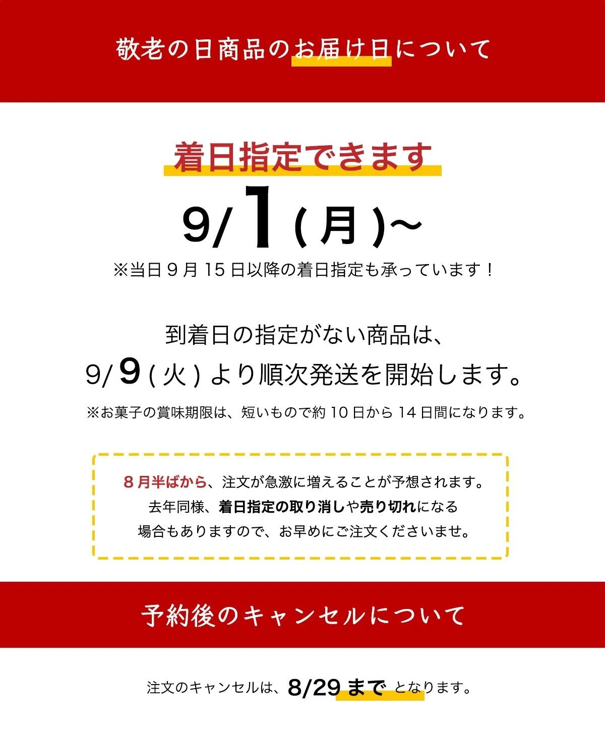 配送地域や運送状況によって、敬老の日当日又、